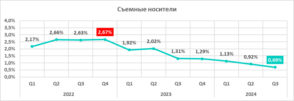 | Съемные носители | 0,92% | 0,69% | -0,23 п.п. |