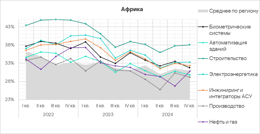 Однако в четвертом квартале 2024 года эта категория заняла более высокое место в региональных рейтингах по сравнению с глобальным (девятое место) в следующих регионах:
