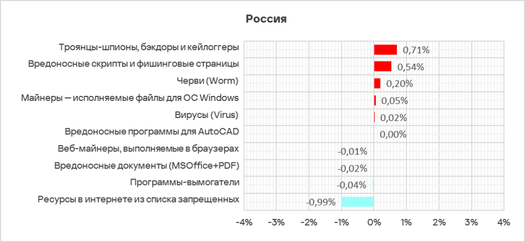 - шпионские программы — в 1,2 раза, первое место по росту показателя в мире;