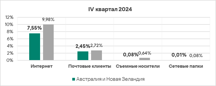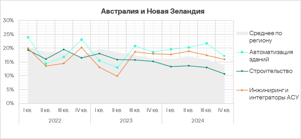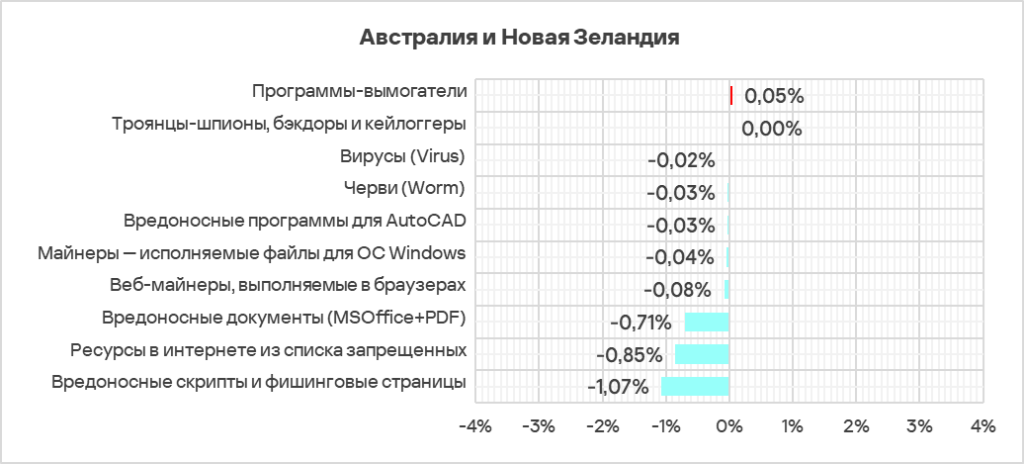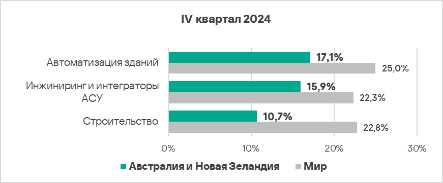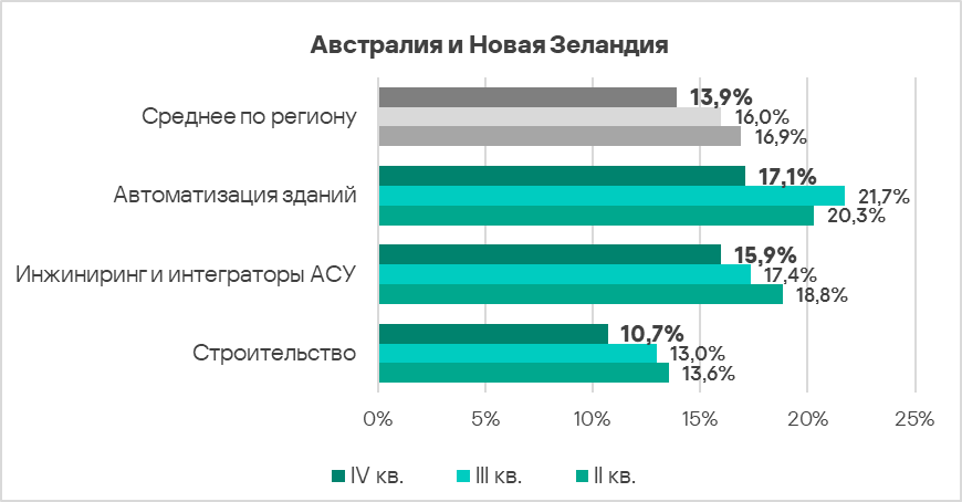 - Австралия и Новая Зеландия занимают десятое место в мировом рейтинге по доле компьютеров АСУ, на которых были заблокированы вредоносные объекты.