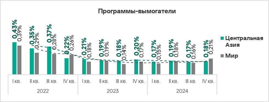 - программы-вымогатели — в 1,3 раза;