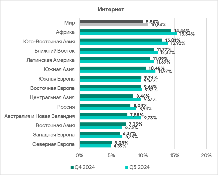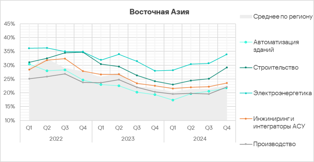 Лидерами по росту этого показателя в четвертом квартале 2024 года являются Россия, Восточная Азия, Южная Европа и Западная Европа.