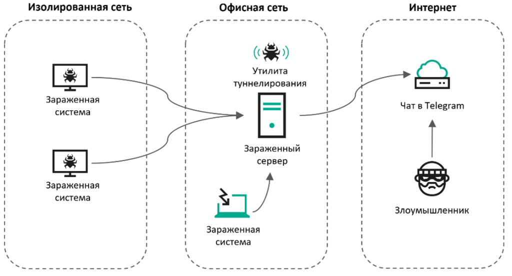 В исследованном арсенале злоумышленников имеются как коммерческие фреймворки постэксплуатации, обеспечивающие автоматизацию процессов сетевой разведки и распространения вредоносного ПО, так и утилиты с открытым исходным кодом, применяемые для решения конкретных задач. При этом злоумышленники уделяют особое внимание обходу защитных решений и сокрытию своей активности, в том числе за счет одновременного использования различных методов туннелирования и шифрования сетевого трафика.