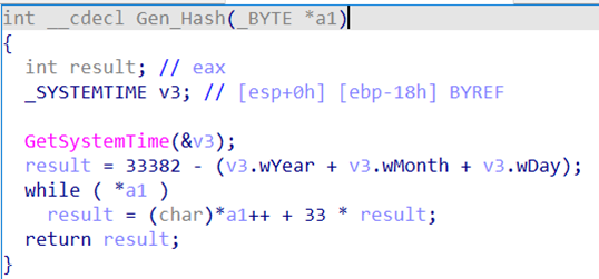 Стоит также отметить, что вредоносный инсталлятор использует динамический импорт функций по хешам, чтобы скрыть свою истинную функциональность, причем применяемая хеш-функция совпадает с той, что используется в другой вредоносной программе группы — бэкдоре Vasilek, который будет описан далее.