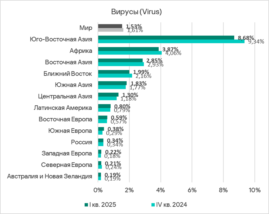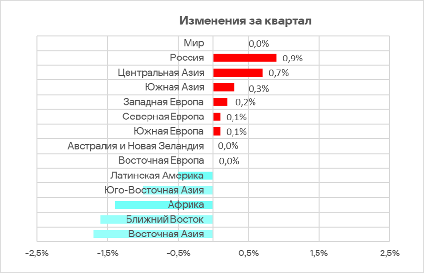Показатель этого источника угроз за квартал уменьшился во всех регионах.