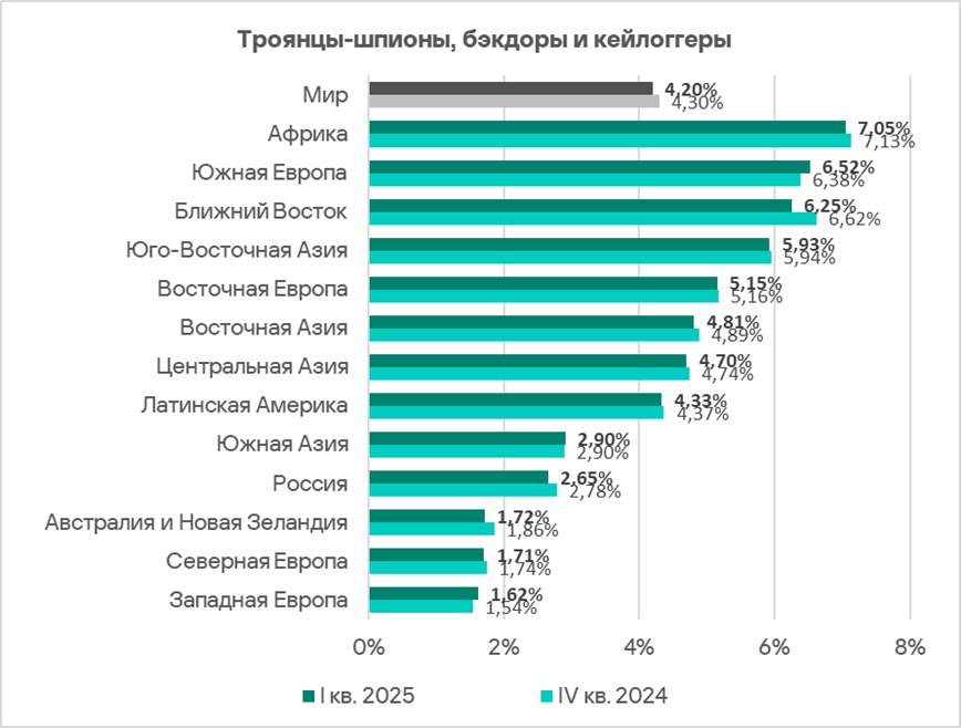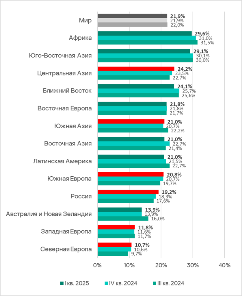 Помимо регионов из топ-3 проблема этого источника угроз особенно актуальна для России (9,34%) и Центральной Азии (9,50).
