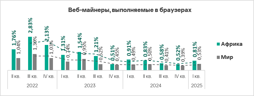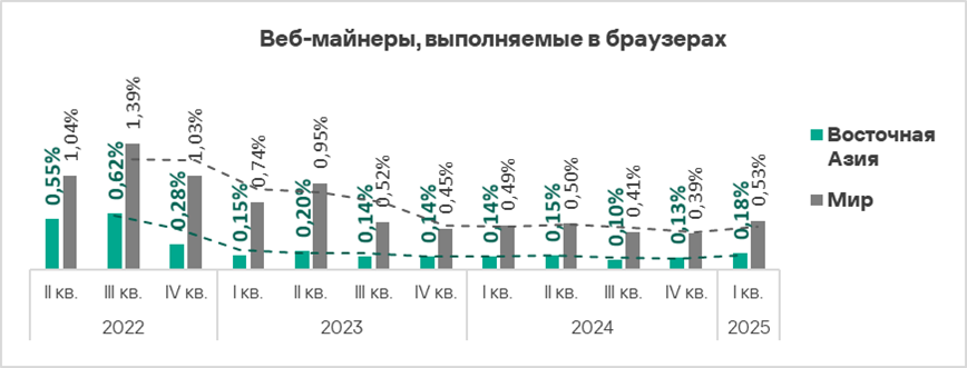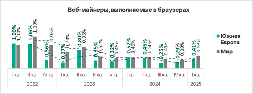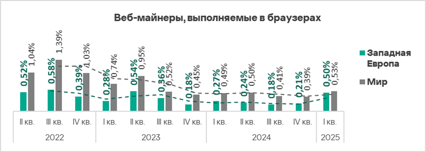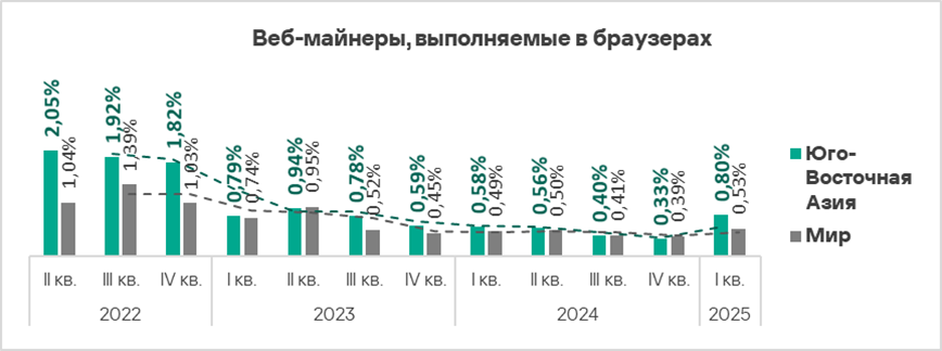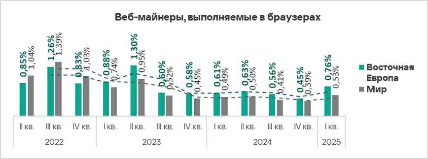 - Веб-майнеры — в 2,2 раза;