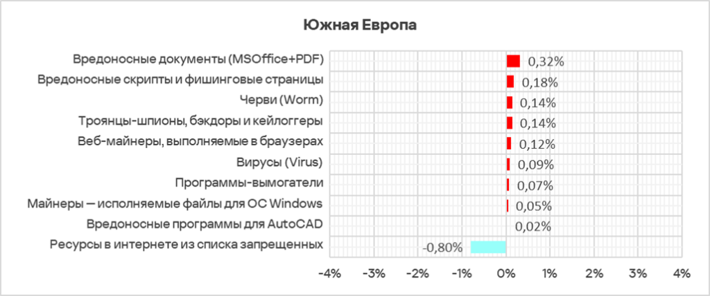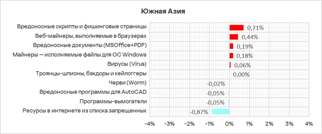 Больше всего за квартал показатель этого источника угроз вырос в Австралии и Новой Зеландии (+0,35 п. п.), Южной Азии (+0,29 п. п.) и Южной Европе (+0,25 п. п.).