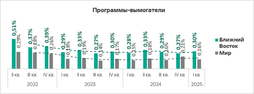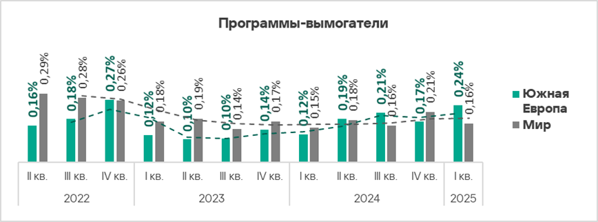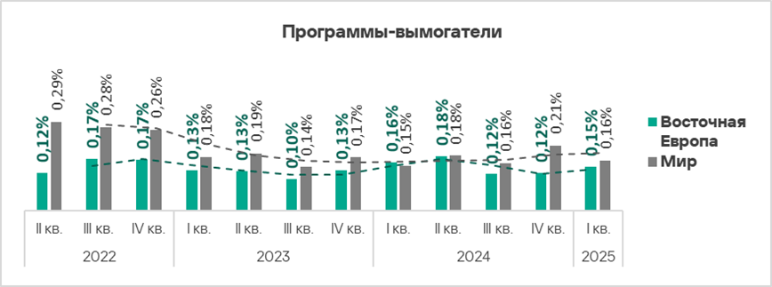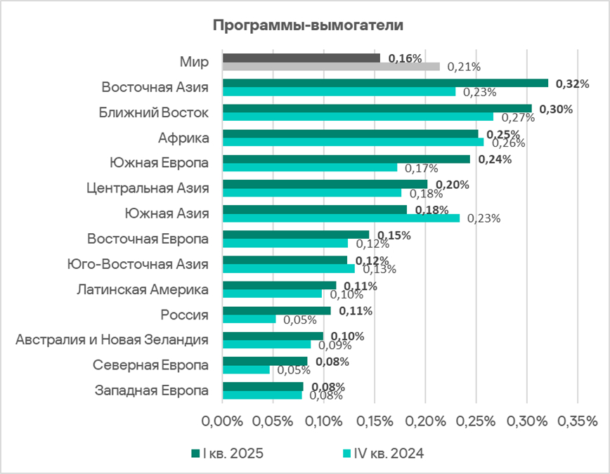 Тем не менее, регион занял пятое место в мире по росту показателя программ-вымогателей (в 1,6 раза).