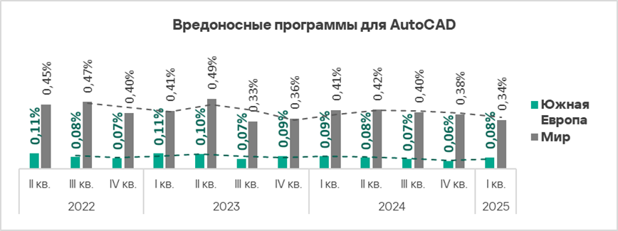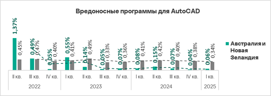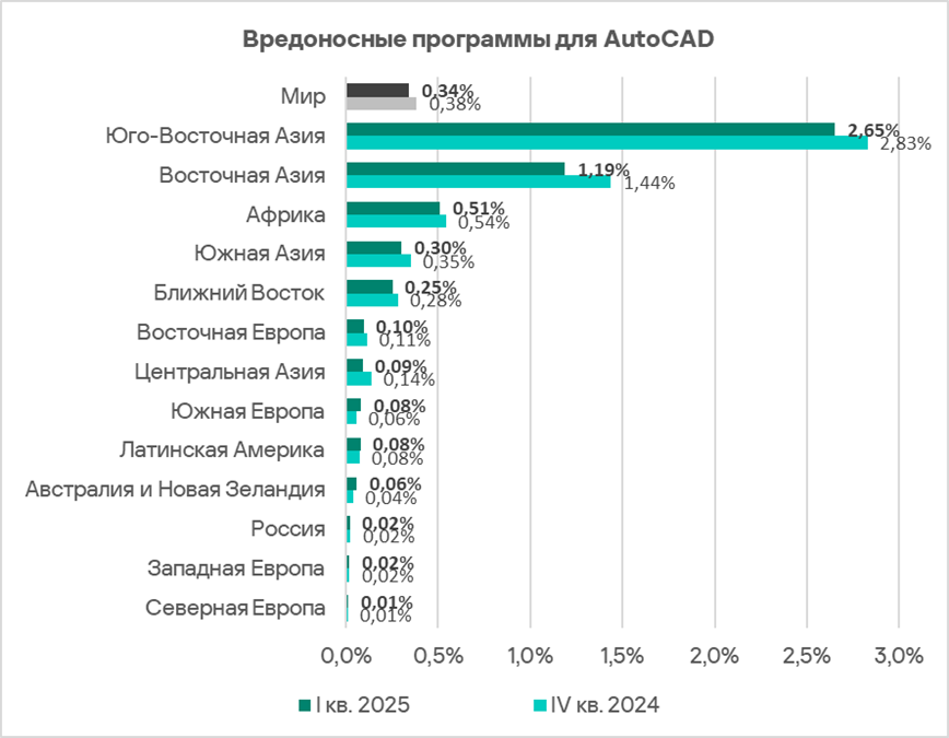 - Вредоносные программы для AutoCAD — в 1,5 раза. Среди регионов — второе место по росту этого показателя;