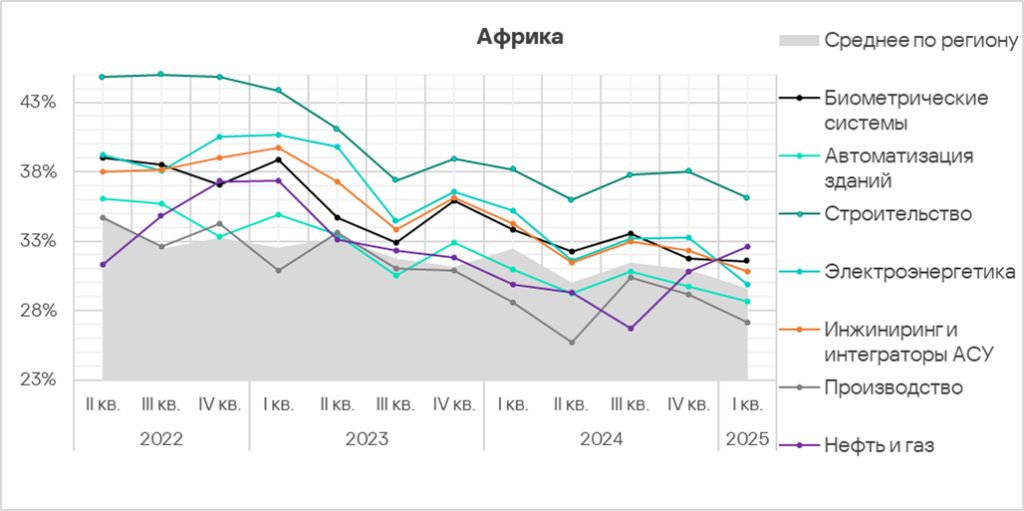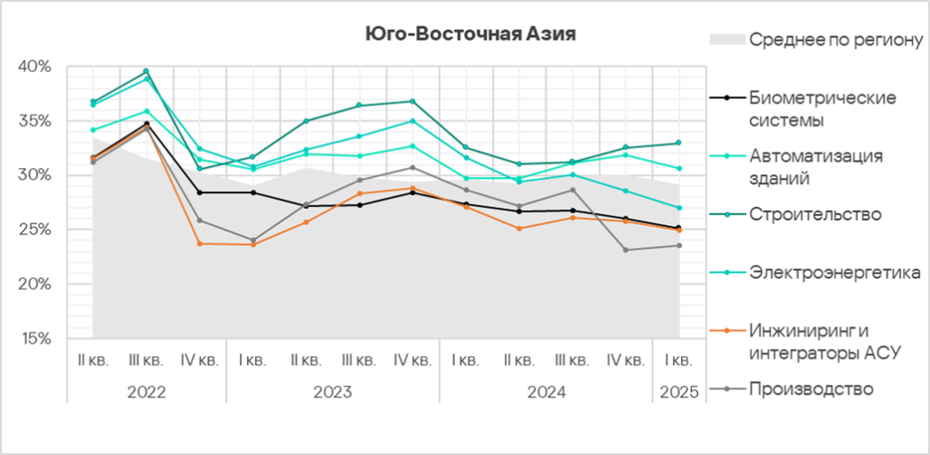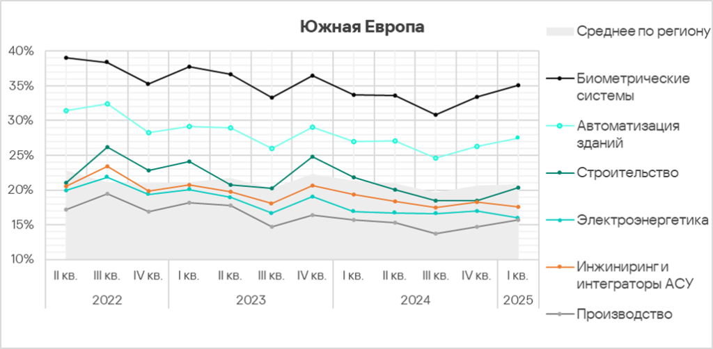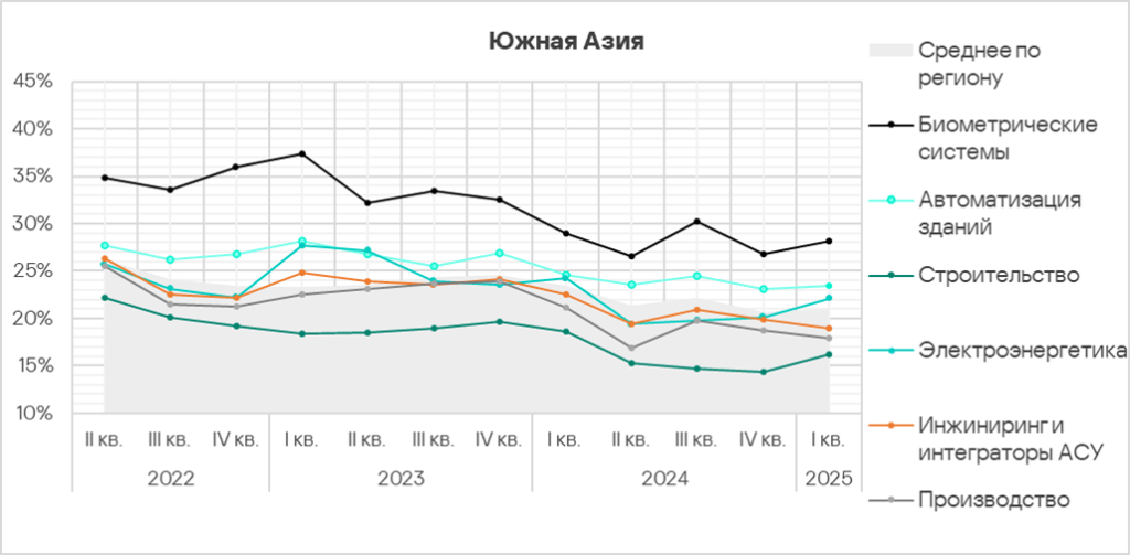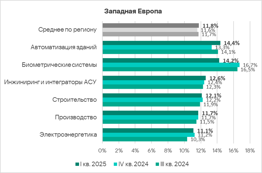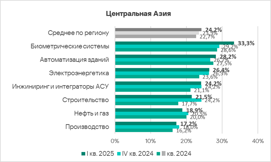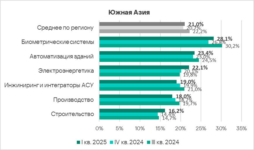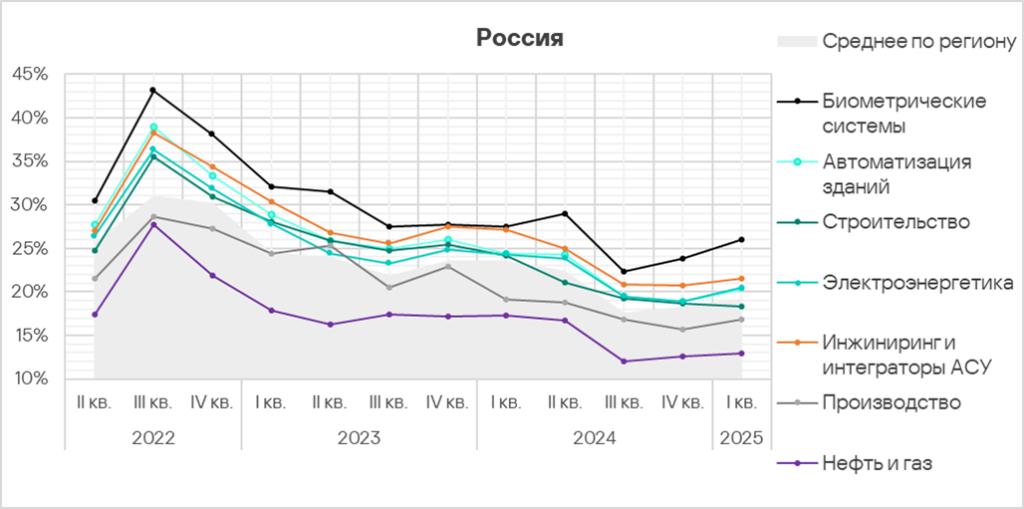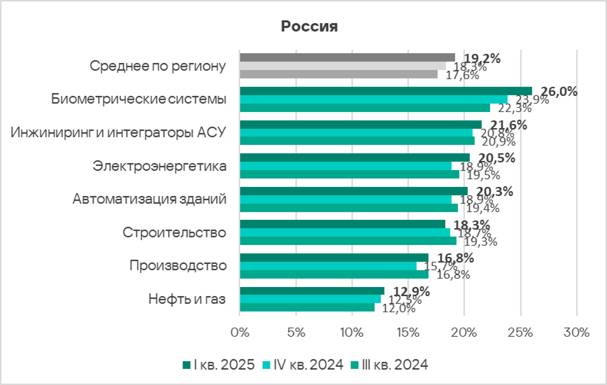 Автоматизация зданий и биометрические системы по-прежнему демонстрируют тренды, заметно превышающие среднее для региона значение.