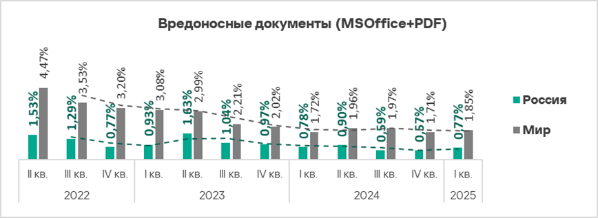 - Вредоносные документы — в 1,4 раза;