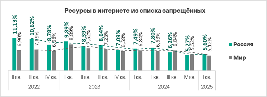 - Ресурсы в интернете из списка запрещенных — в 1,1 раза;
