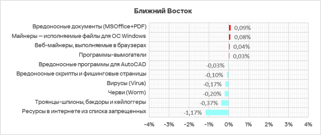 Наибольший рост за квартал в регионе отмечен у доли компьютеров АСУ, на которых были заблокированы следующие категории вредоносных объектов:
