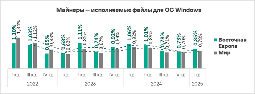 - Майнеры — исполняемые файлы для ОС Windows — в 1,4 раза.