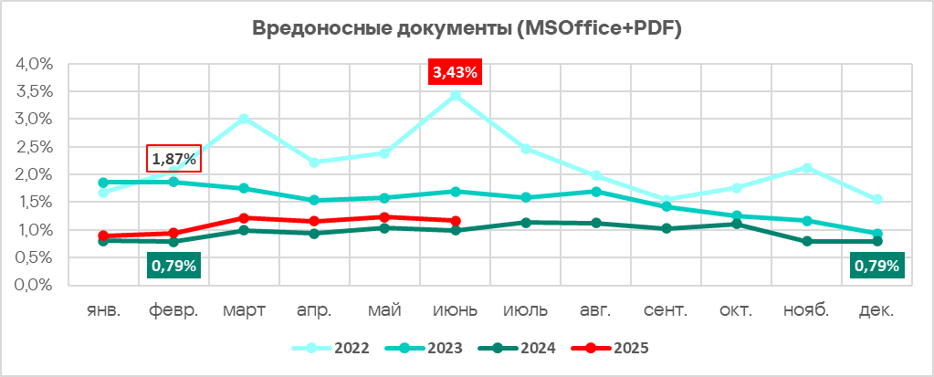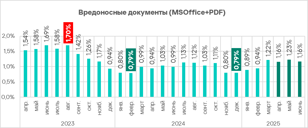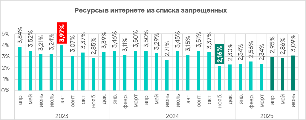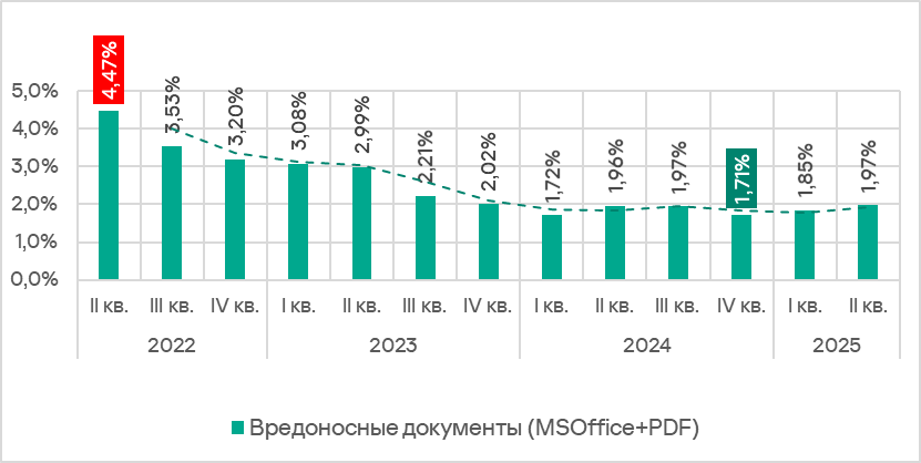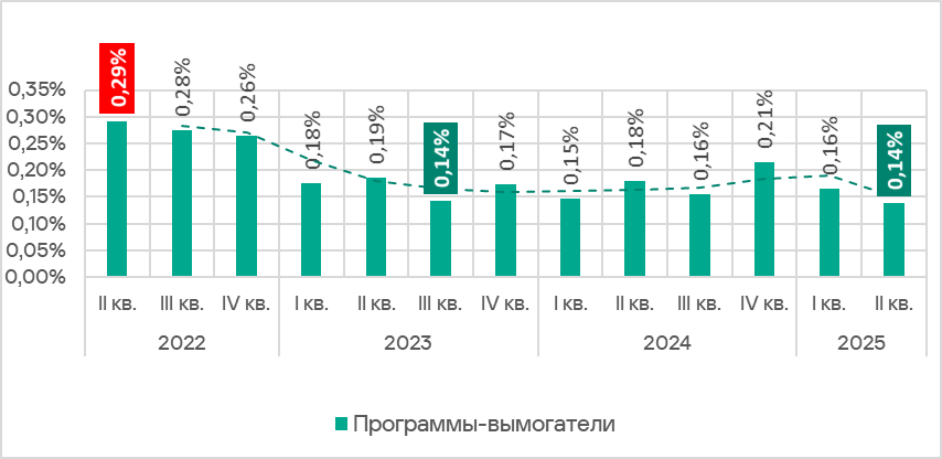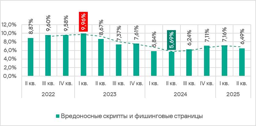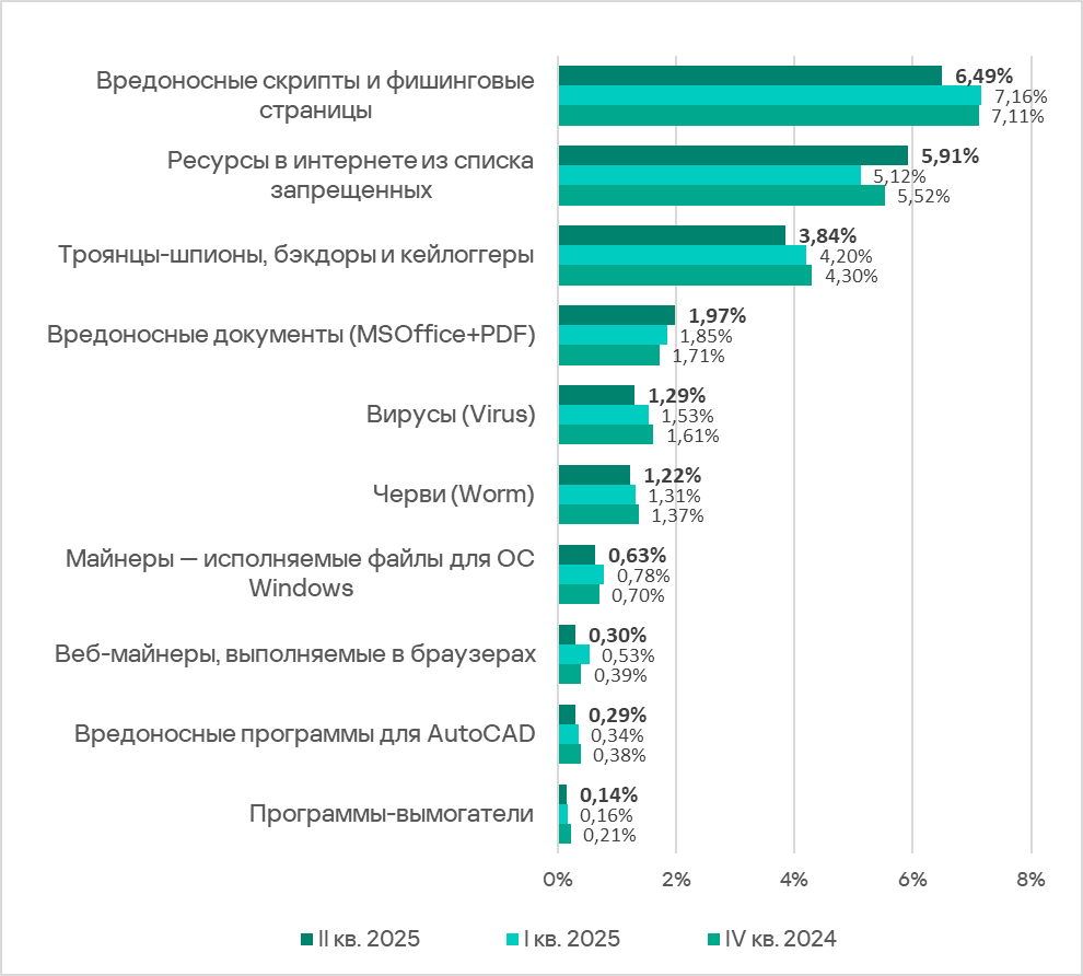 Во втором квартале 2025 года доля компьютеров АСУ, на которых были заблокированы такие угрозы, снова увеличилась.