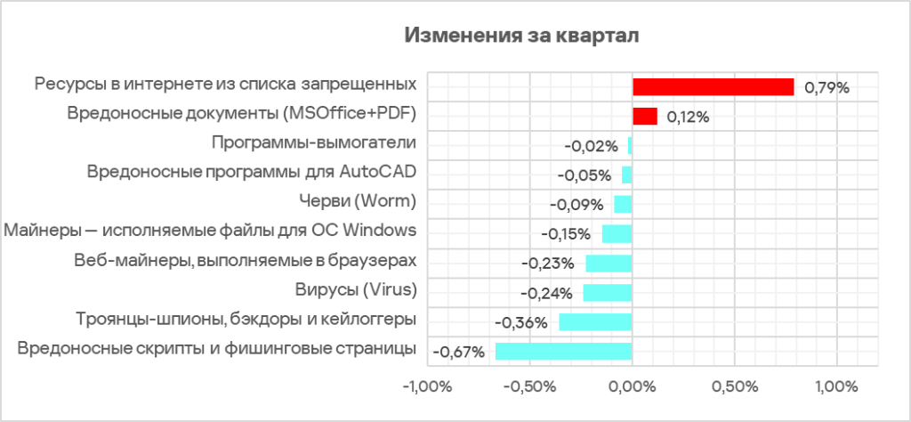 Как правило, вредоносные программы для AutoCAD — минорная угроза, которая в рейтинге категорий вредоносных объектов по доле компьютеров АСУ, на которых она была заблокирована, занимает последние места.