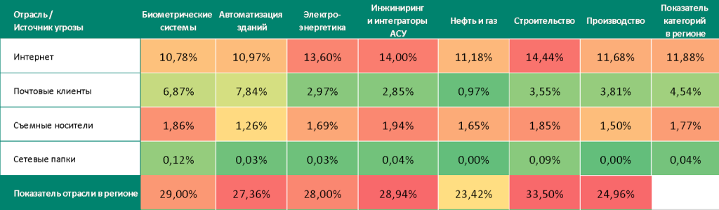 Значения по всем источникам угроз в регионе превышают среднемировые, в случае съемных носителей это превышение весьма значительно – в 4,8 раза.