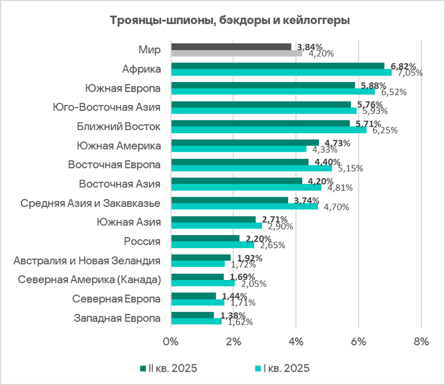 Показатель шпионских программ в регионе значительно превышает среднемировое значение: во втором квартале 2025 года — в 1,8 раза.