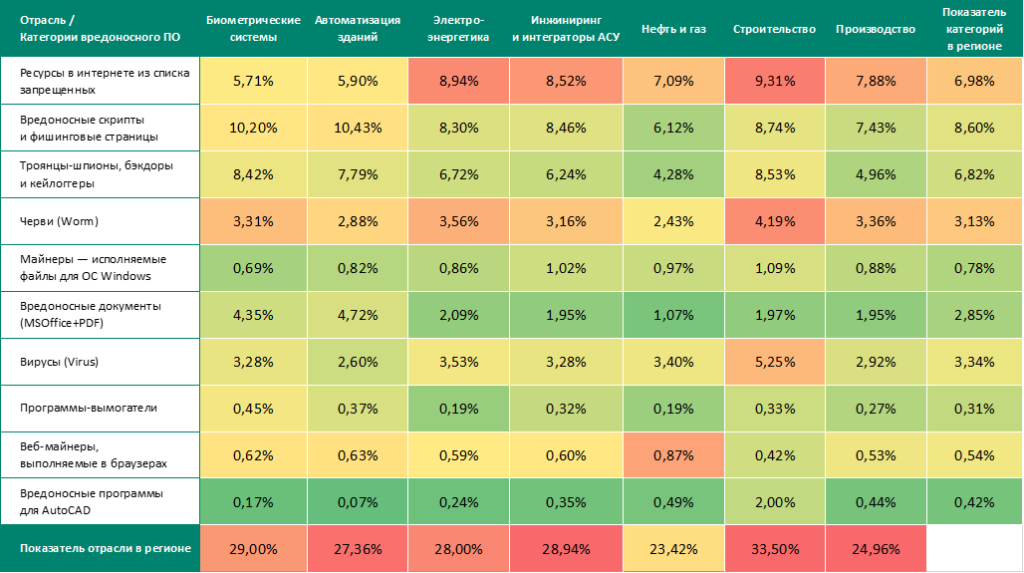 В 1,8 раз в регионе больше, чем в мире, доля компьютеров АСУ, на которых блокируются шпионские программы и веб-майнеры.