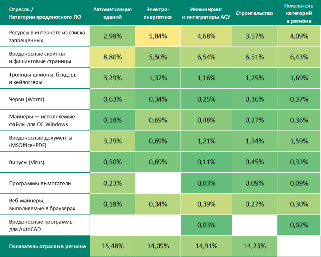 По сравнению с мировыми показателями в регионе выше доля компьютеров АСУ, на которых были заблокированы следующие категории угроз: