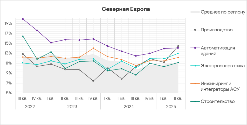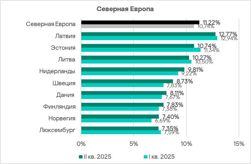 Показатель в регионе колеблется. По его росту во втором квартале 2025 года Северная Европа заняла второе место среди регионов.