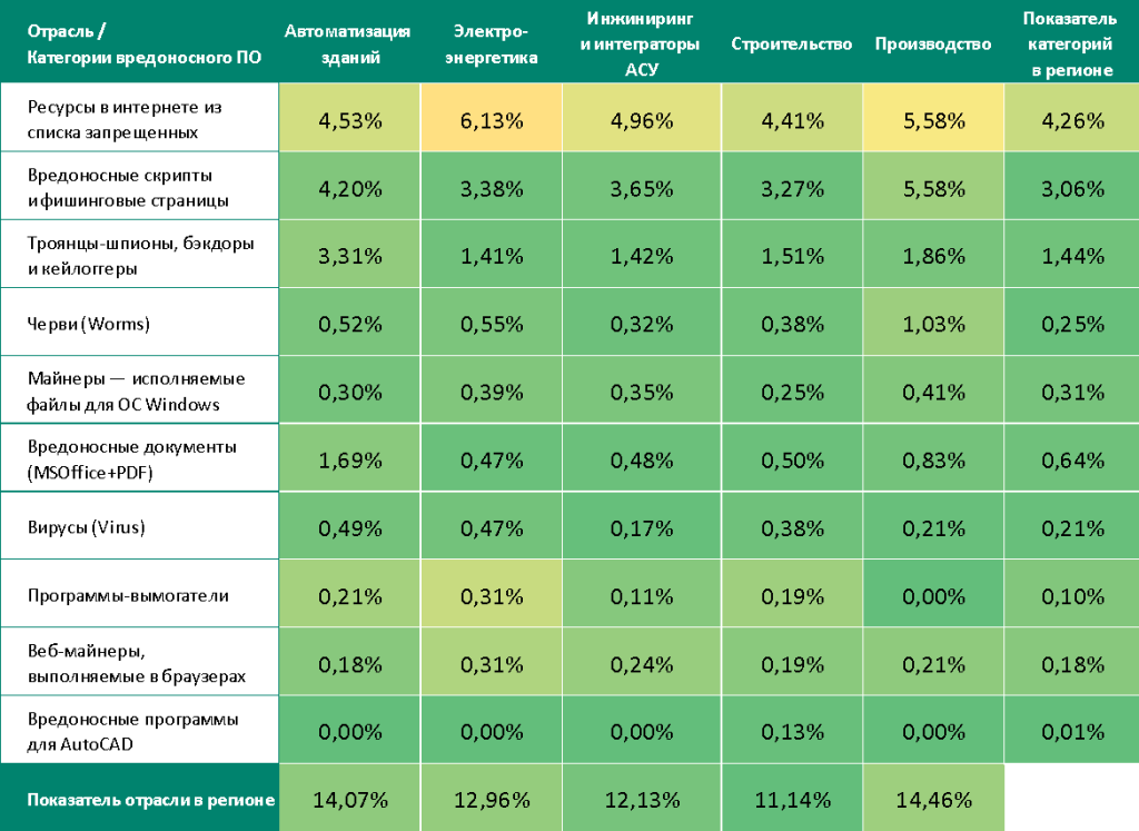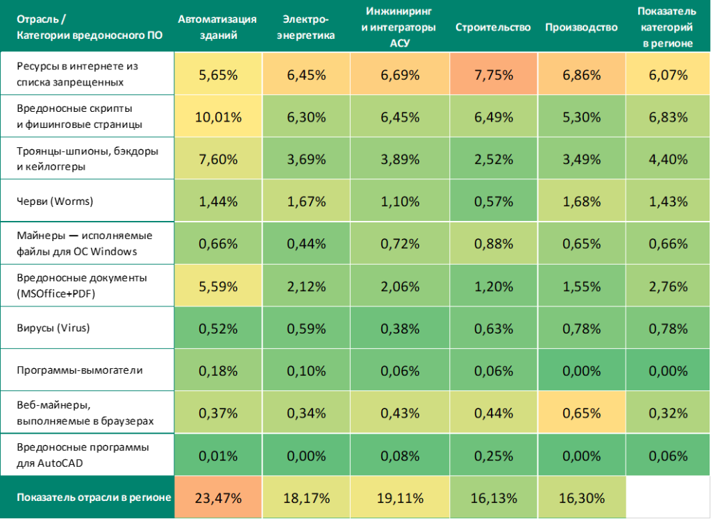 По сравнению с мировыми показателями в регионе выше доля компьютеров АСУ, на которых были заблокированы следующие категории угроз: