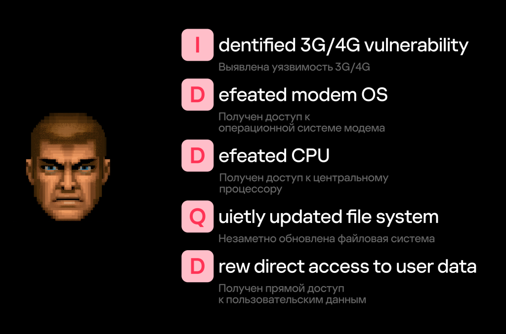 Считается, что обход механизмов безопасности 3G/LTE – это исключительно академическая задача, поскольку при подключении пользовательского устройства (User Equipment, UE) к базовой станции сотовой связи (Evolved Node B, eNB) устанавливается безопасный канал связи. Даже если кто-то сможет обойти эти механизмы, обнаружить уязвимость в модеме и выполнить на нем свой код, это скорее всего не поставит под угрозу бизнес-логику устройства. Эта логика (например, пользовательские приложения, история браузера, звонки и SMS на смартфоне) находится на АР и предположительно не может быть доступна с модема. Или может?