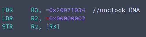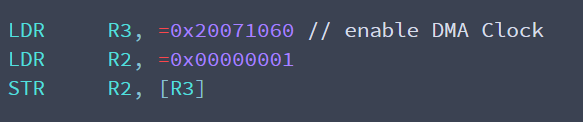 Помимо включения, для работы контроллера DMA нужно также подать на него тактовый сигнал clock. За это отвечает другой аппаратный регистр в том же регионе памяти.