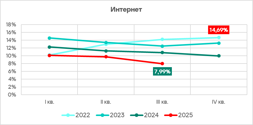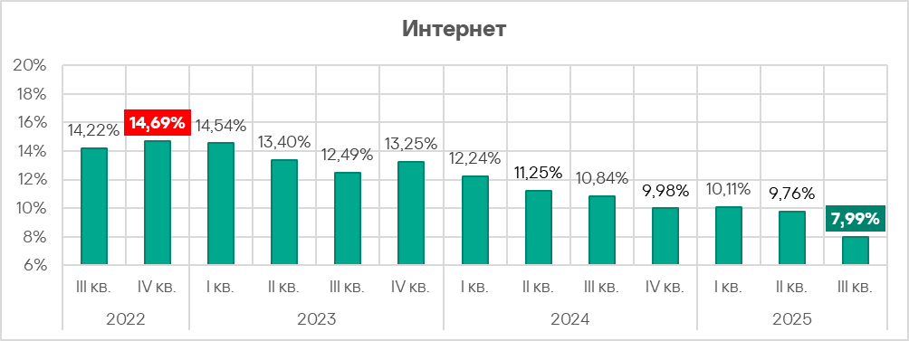 В третьем квартале 2025 года показатель угроз из интернета уменьшился во всех регионах.