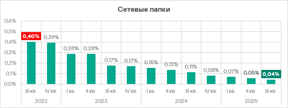 В третьем квартале 2025 года показатель по сетевым папкам достиг минимального значения с начала 2022 года.