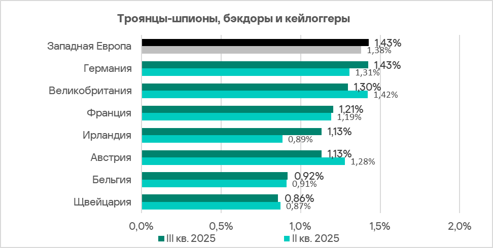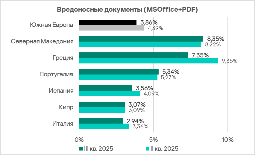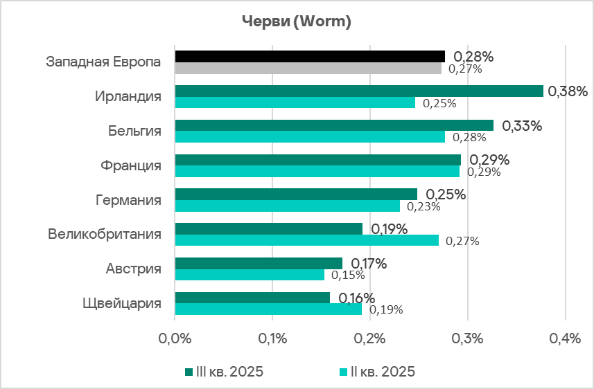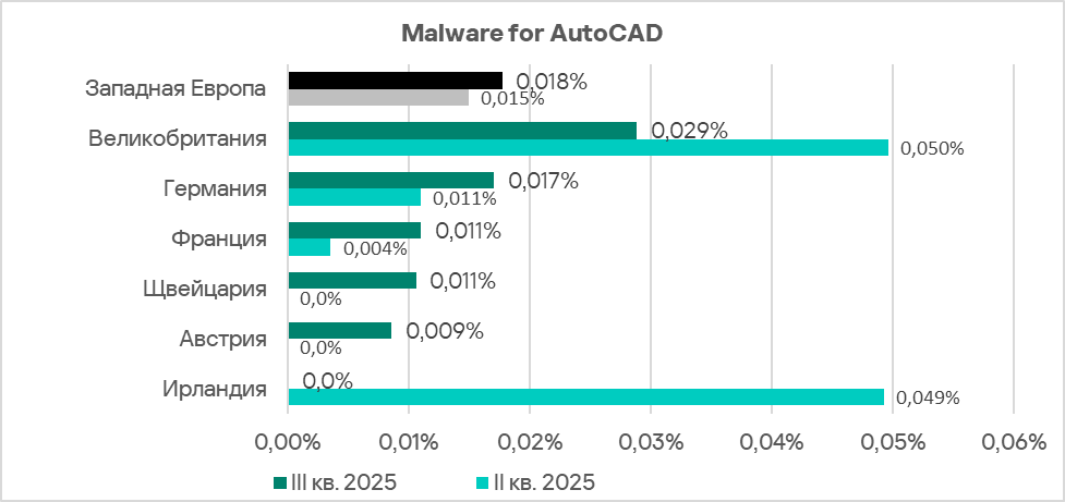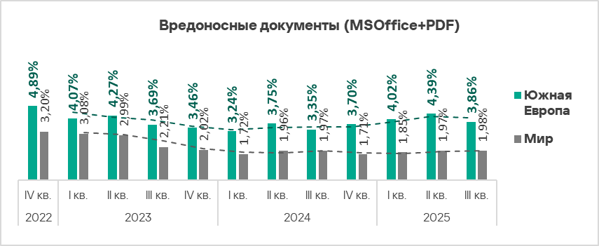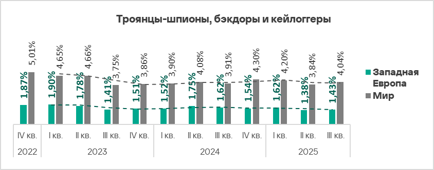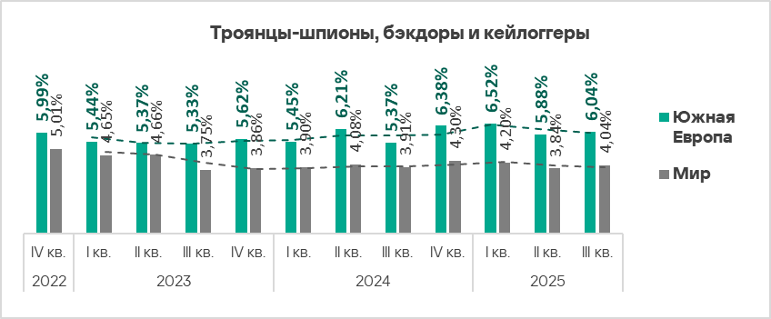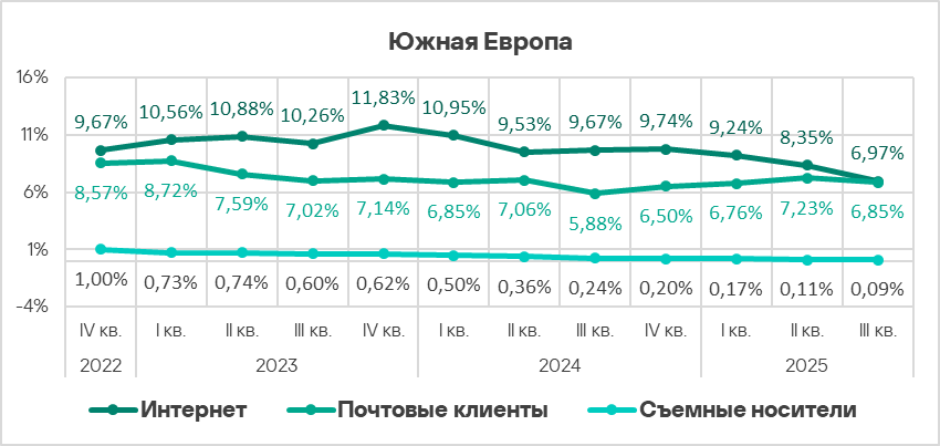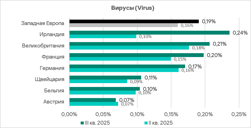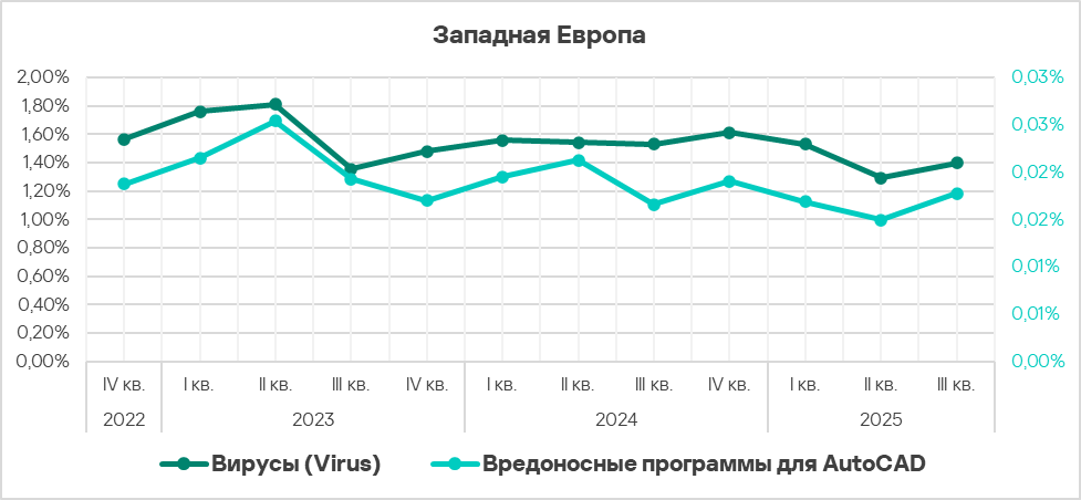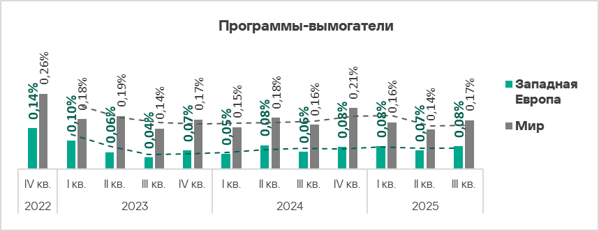 В третьем квартале 2025 года Восточная Европа заняла восьмое место в рейтинге регионов по доле компьютеров АСУ, на которых были заблокированы вредоносные объекты. Показатель Восточной Европы больше, чем в остальных европейских регионах.