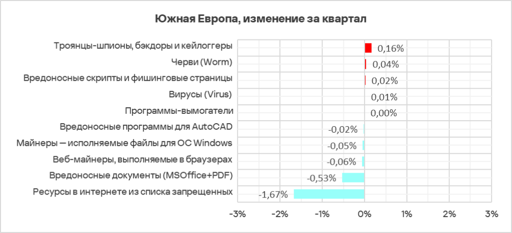 Вредоносные документы используются злоумышленниками для распространения целевого вредоносного ПО — в том числе шпионских программ. Больше всего в регионе за квартал подрос показатель именно шпионских программ.