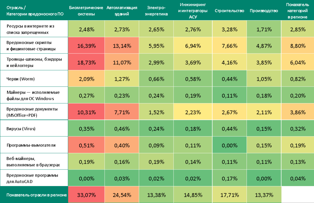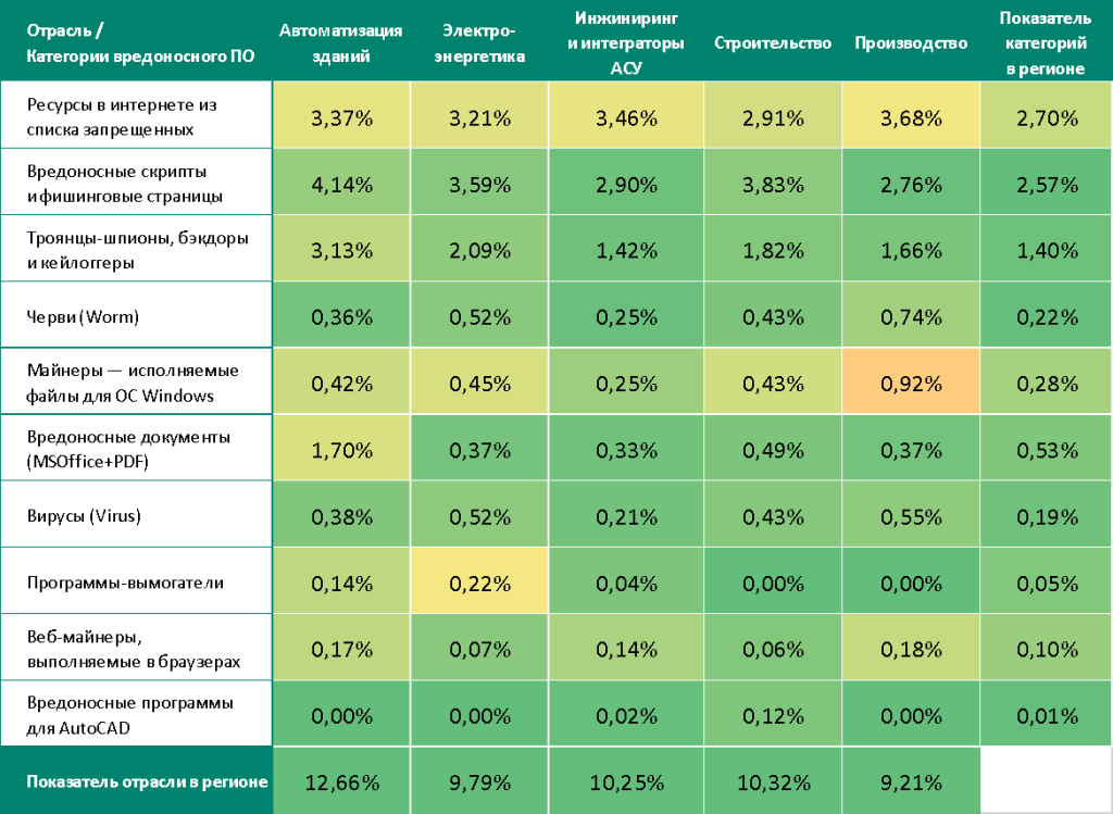 По сравнению с мировыми показателями в регионе выше доля компьютеров АСУ, на которых были заблокированы следующие категории угроз:
