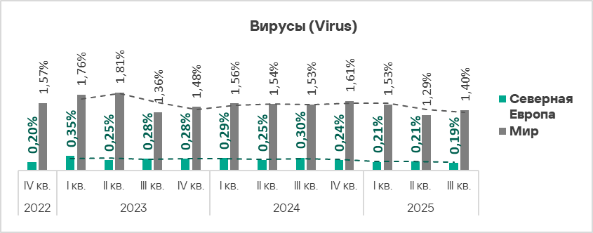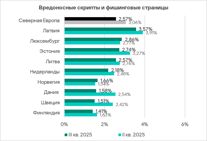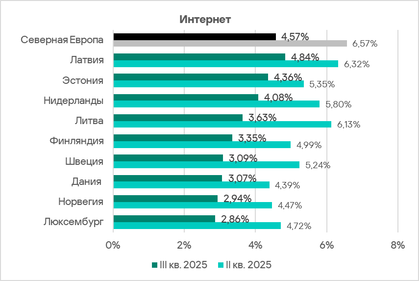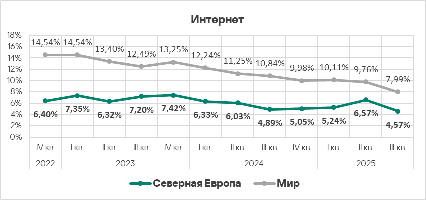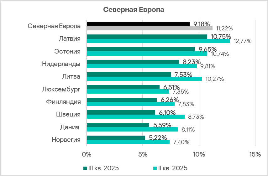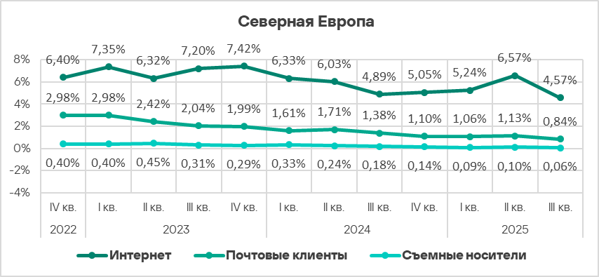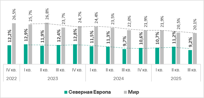 В Северной Европе в третьем квартале 2025 года уменьшились показатели всех категорий угроз.