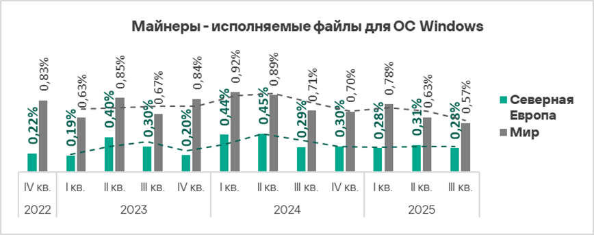 Самая высокая позиция у Северной Европы в рейтинге в категории майнеров – исполняемых файлов для ОС Windows.
