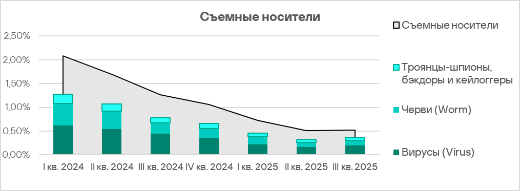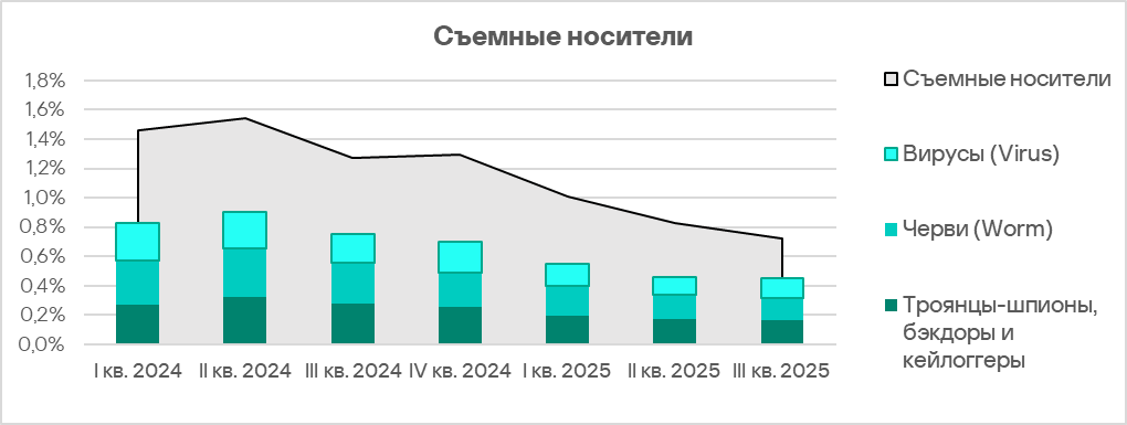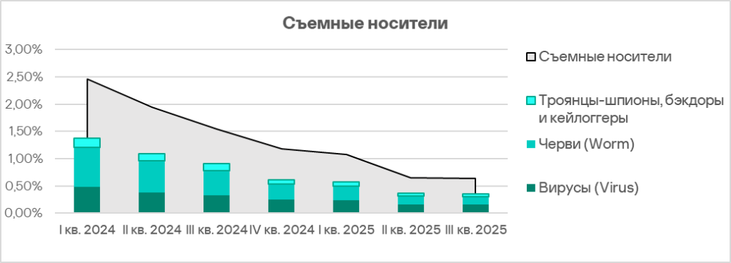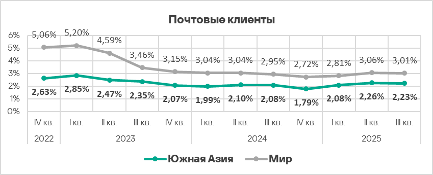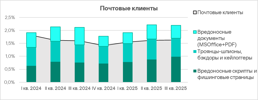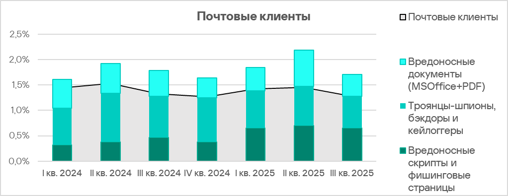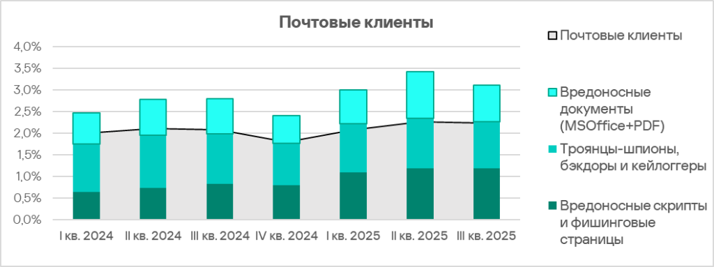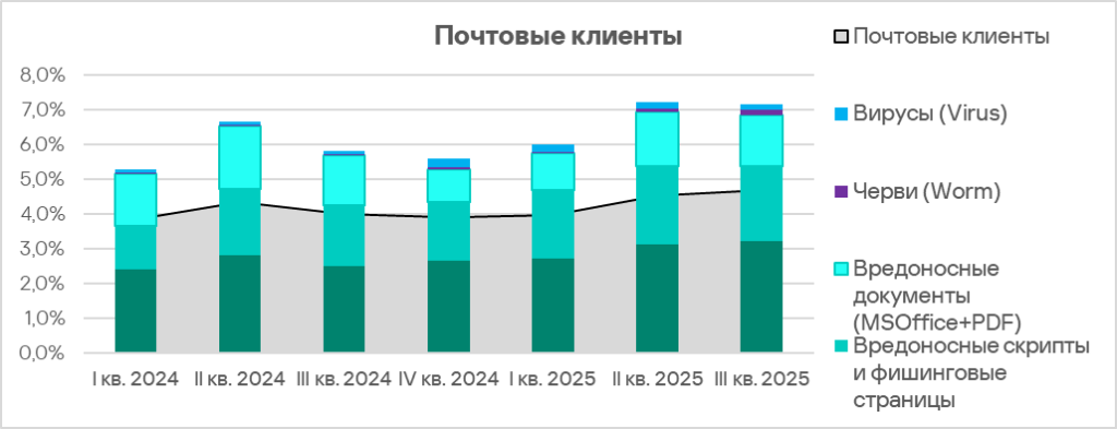 В третьем квартале 2025 года показатель вырос у почтовых клиентов и немного подрос у съемных носителей.