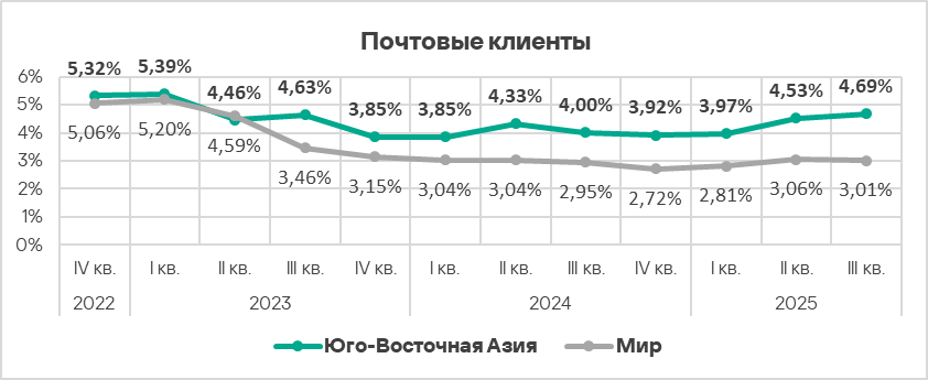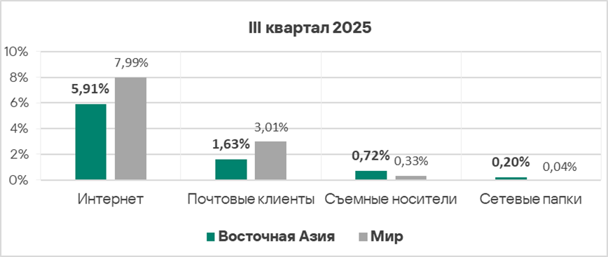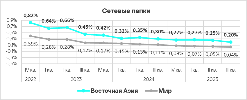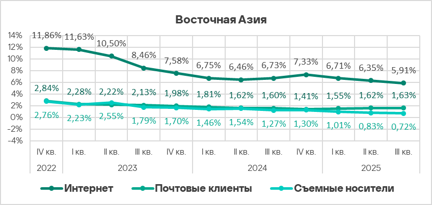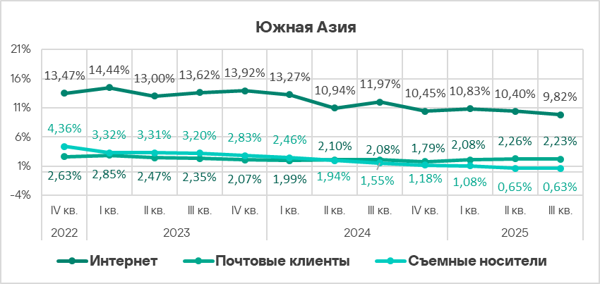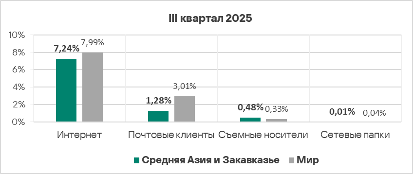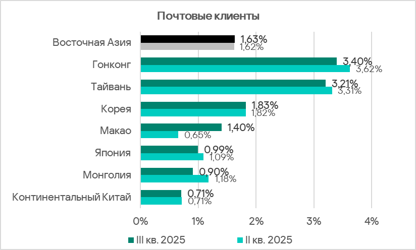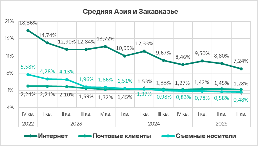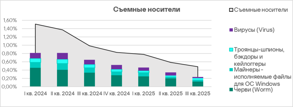 В третьем квартале 2025 года показатель вырос у почтовых клиентов и немного подрос у съемных носителей.