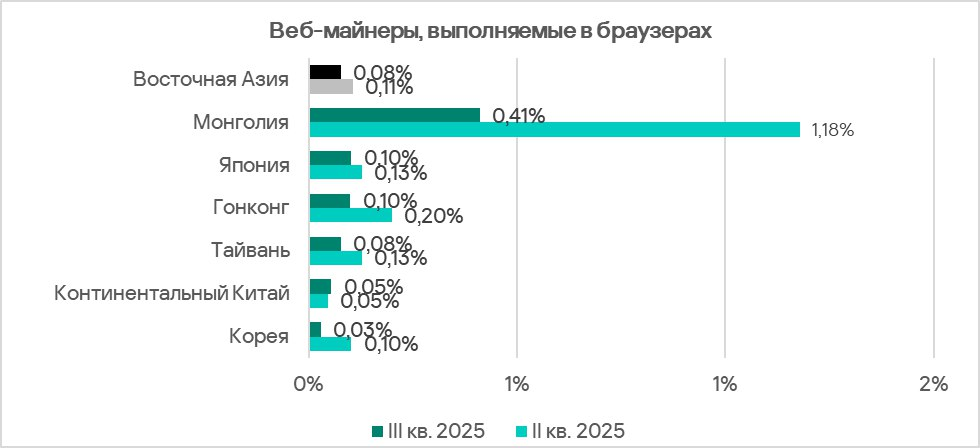 - четвертое место по доле компьютеров, на которых были заблокированы веб-майнеры.