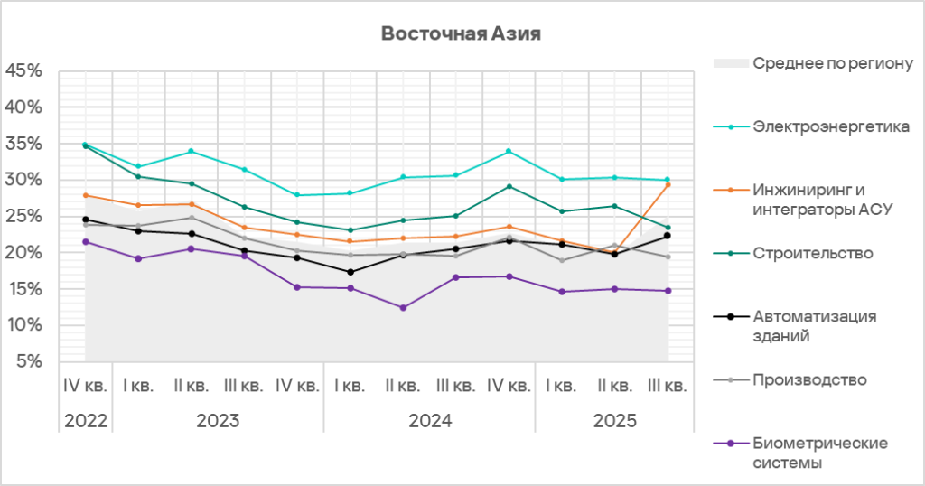 В третьем квартале 2025 года в Юго-Восточной Азии по доле компьютеров АСУ, на которых блокируются вредоносные объекты, среди рассмотренных в отчете отраслей автоматизация зданий обогнала строительство.