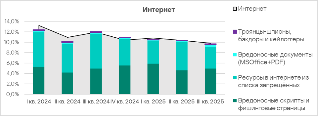 В третьем квартале 2025 года показатель вырос у почтовых клиентов и немного подрос у съемных носителей.