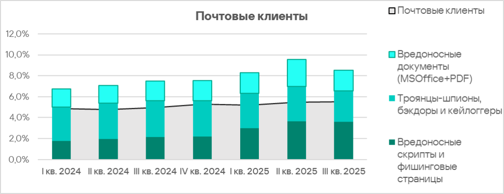 - угрозы из почтовых клиентов — в 1,8 раза;