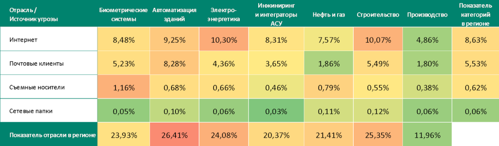 Высокие показатели угроз, распространяющихся через почтовые клиенты (фишинг), — шпионского ПО и программ-вымогателей — явные признаки высокой доступности технологических систем в регионе для продвинутых категорий злоумышленников.