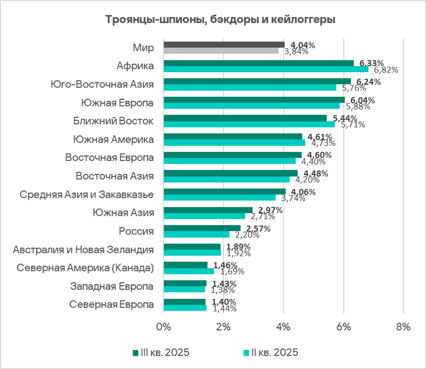 Показатель шпионских программ в регионе значительно превышает среднемировое значение: в третьем квартале 2025 года — в 1,6 раза.