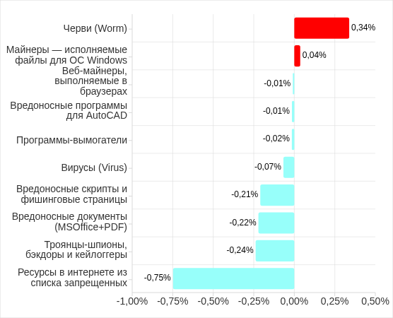 Как правило, вредоносные программы для AutoCAD — минорная угроза, которая в рейтинге категорий вредоносных объектов по доле компьютеров АСУ, на которых она была заблокирована, занимает последние места.