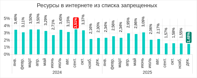 Самым высокий месячный показатель за рассматриваемый период был отмечен в марте 2025 года. В сентябре и декабре 2025 года показатели были наименьшими.