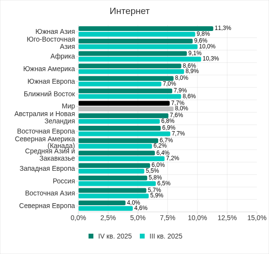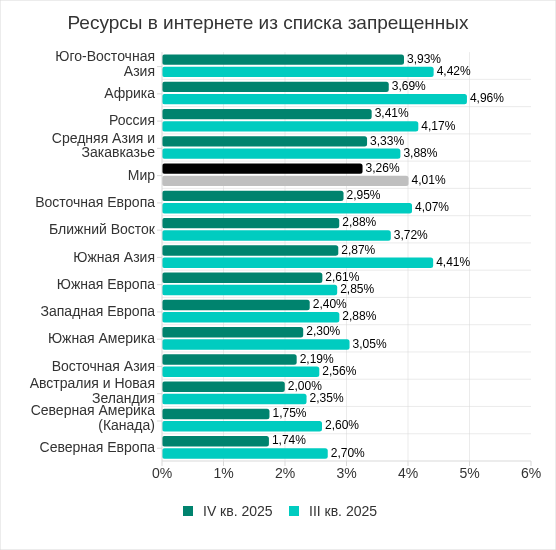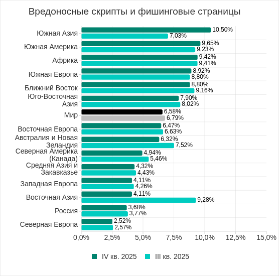В четвертом квартале 2025 года показатель угроз из интернета увеличился в пяти регионах, больше всего – в Южной Азии.