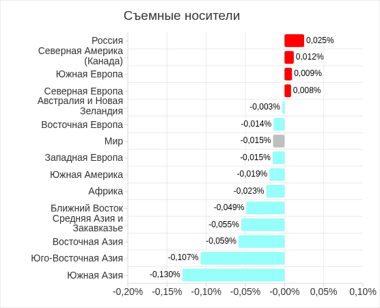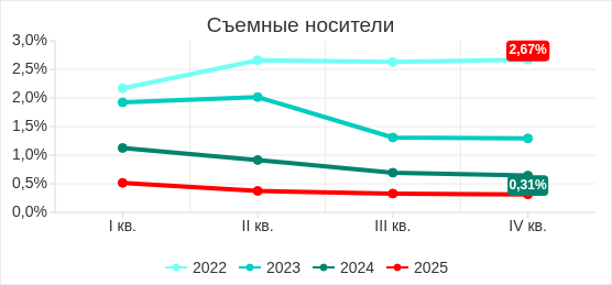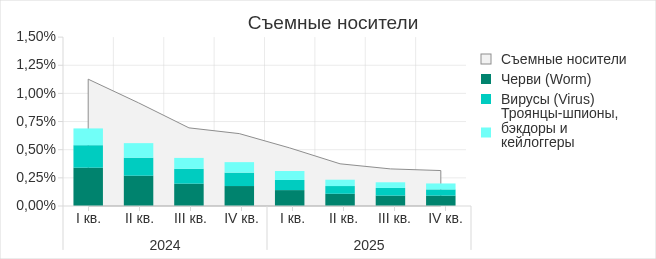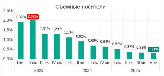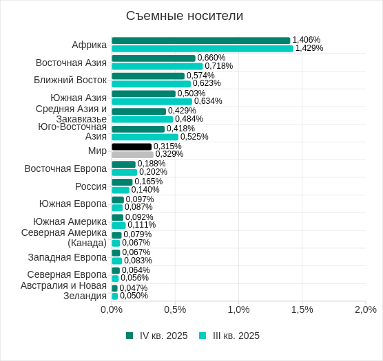 В четвертом квартале 2025 показатель угроз со съемных носителей увеличился в России, Северной Америке (Канада), Южной Европе и Северной Европе.