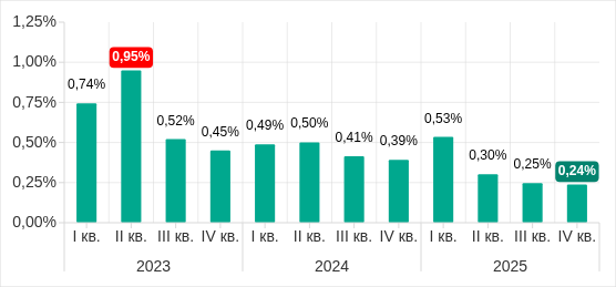 ▼0,25 п. п. |