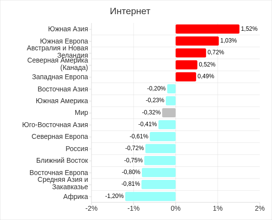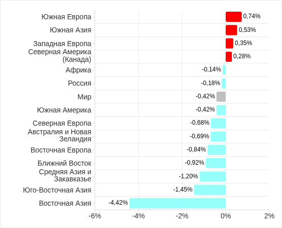 В регионах показатель варьировал от 8,5% в Северной Европе до 27,3% в Африке. Значения выросли в четырех регионах, лидирует по росту Южная Европа.